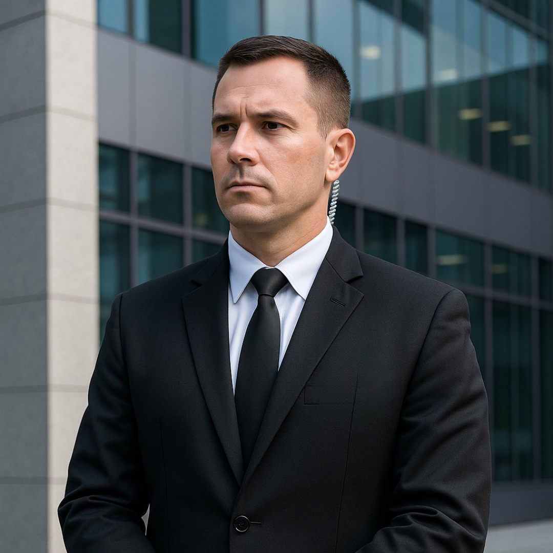 Elementos de prevención de amenazas para zonas de riesgo, controla accesos y vigila al personal. Usa uniforme Uniforme ejecutivo.